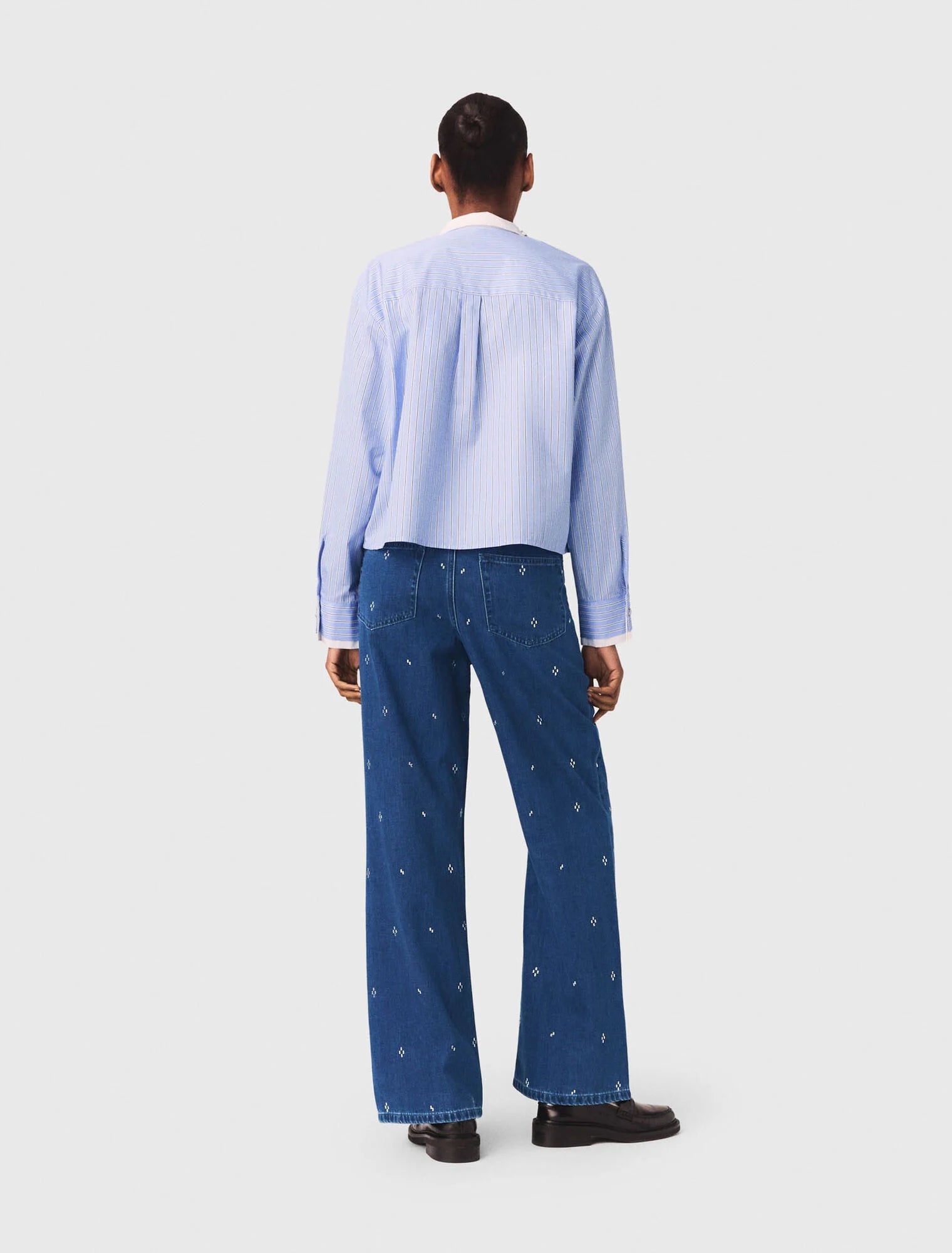 - Wide-leg jeans with rhinestones